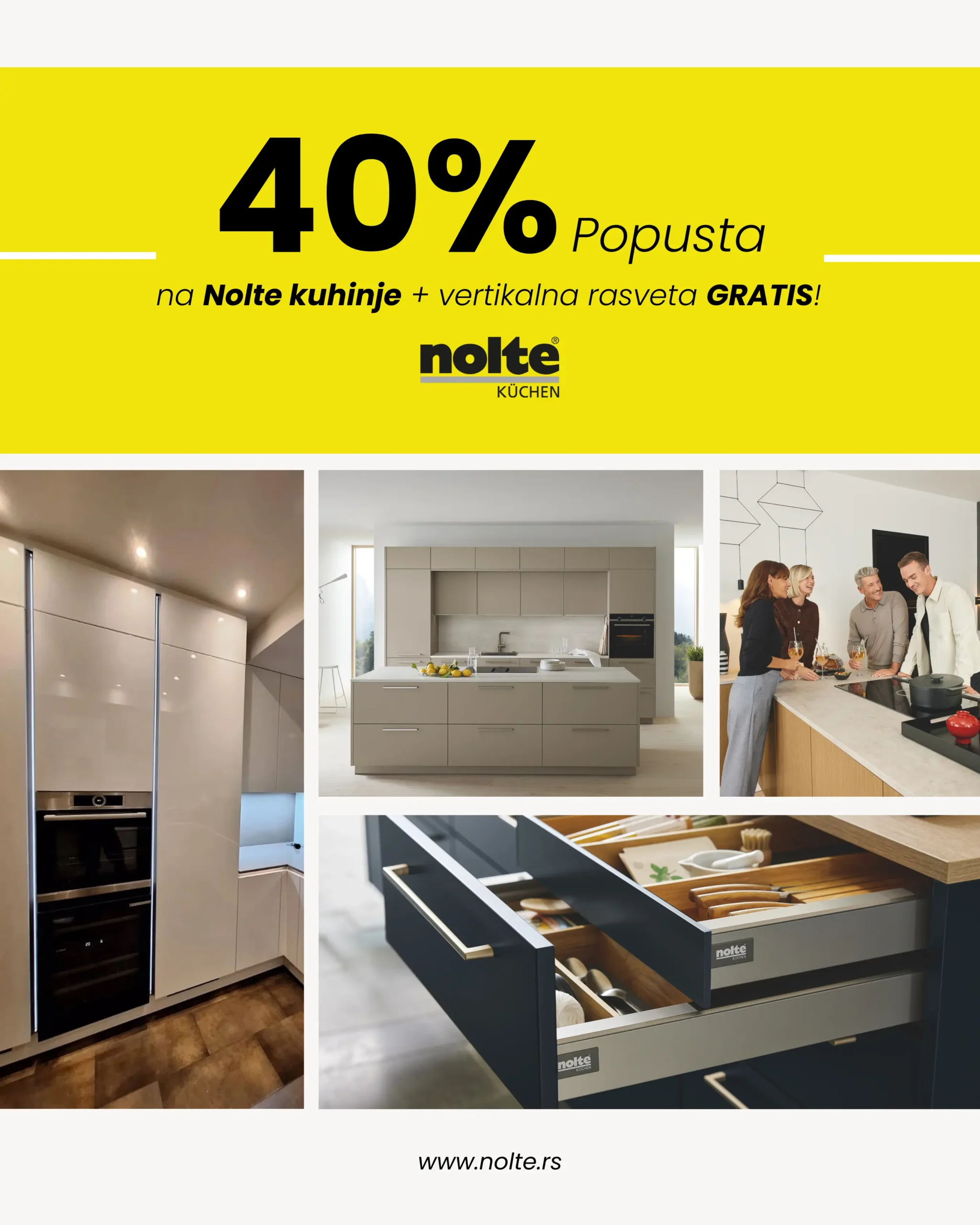 Iskoristite posebnu akciju i ostvarite do 40% popusta na Nolte asortiman kuhinja.