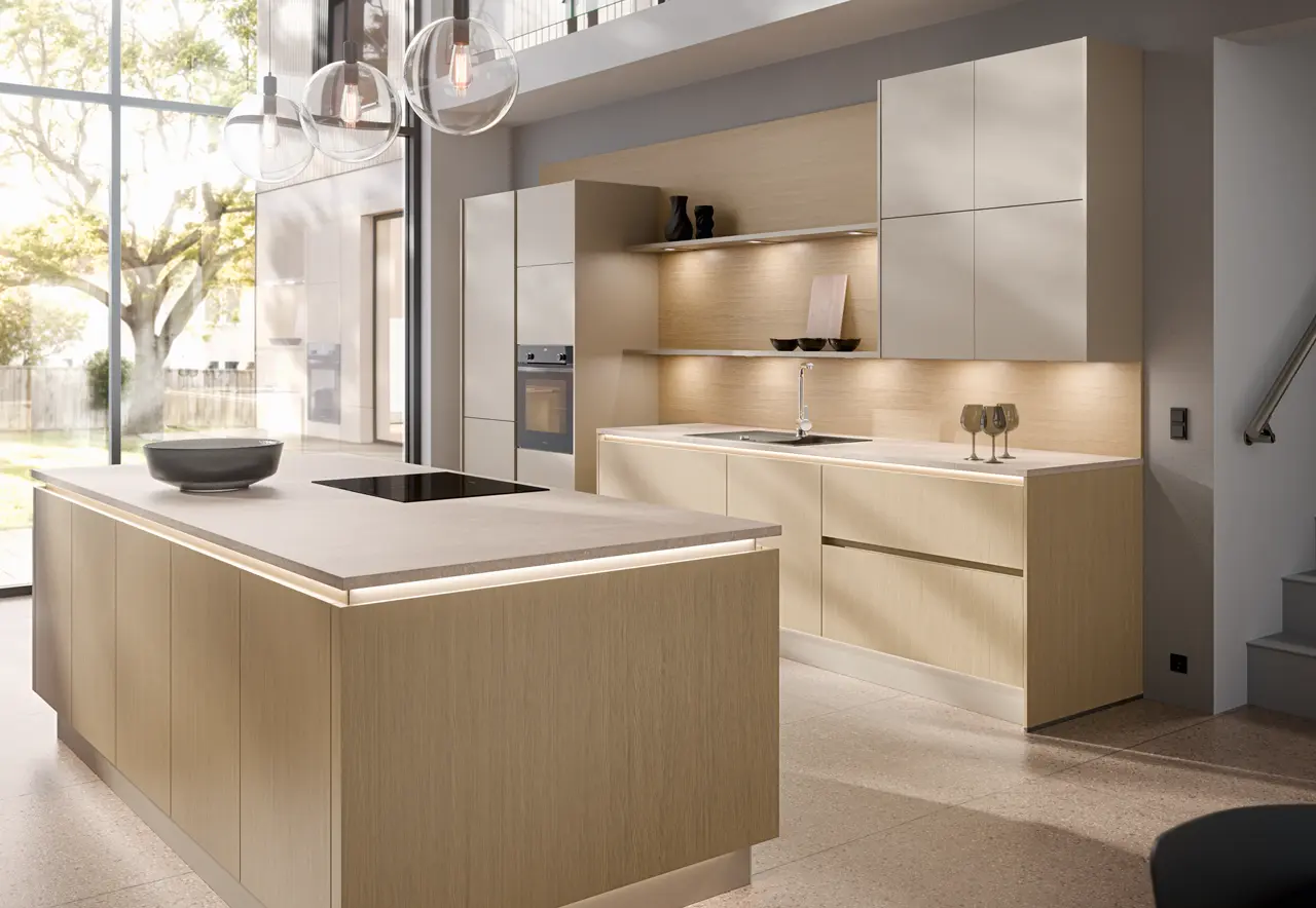 Ručke i sistemi bez ručki u Smart programu omogućavaju izbor između klasičnog i minimalističkog dizajna kuhinje. Nude funkcionalnost, čist izgled i jednostavnu upotrebu u savremenim enterijerima.